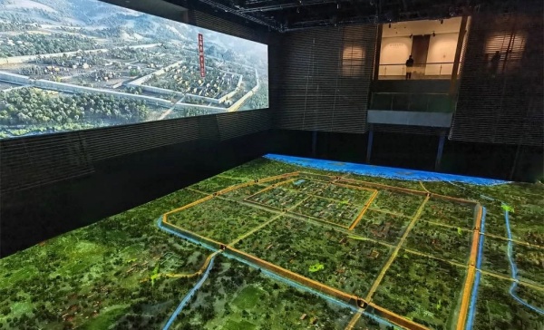 步入展廳,入口對面,光芒微弱的油燈邊,采用機器人技術制作的仿真古蜀王、手握權仗緩緩出現在參觀者面前,并隨著場景光線的漸漸增強,慈祥地招著手說道:“讓我們從這里開始探索古蜀金沙的旅程,尋覓遺失的故事吧!”,一旁,仿真機器小狗,搖著歡快的尾巴,彷佛也正在歡迎各位穿越時空之旅的客人。機器人技術、古蜀王人物造型、油燈、小狗等元素的應用,將大大增加參觀的劇場體驗感,調動受眾的參觀熱情穿過橫跨在頂部,一根倒塌的“大樹干”。觀眾將突然來到一個似乎陌生又似乎熟悉的古蜀自然環境中。這道無形的門,希望能引導受眾很快的進入參觀的角色,