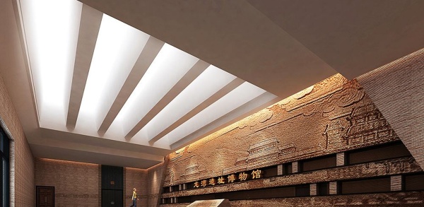 在一種層層遞進的神秘感和抽絲剝繭的效果中得以實現,為營造足夠的氛圍,圓形的墻面上是世界各地著名文明遺址中對太陽崇拜的困騰,以及中國古代鳥、太陽、日鳥合構的圖像等元素組合而成的浮雕,墻面的壁盤中陳列著金蛙等八件珍品文物,仿佛太陽神鳥展品的守護者。展區的頂面為放大的太陽神微元素的造型為了與金色形成對比,設計上以褐色作為整個展廳的主基調,強烈地村托出太陽微的高貴,真正感受金沙人對太陽的崇拜。